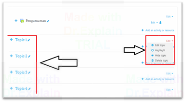Kemudian, silahkan edit masing-masing topik pada matakuliah sesuai dengan silabus atau materi perkuliahan. Klik Edit kemudian Edit Topic.