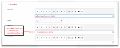 Isikan data pertanyaan anda beserta pilihan bergandanya sebagaimana tampilan berikut: