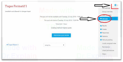 choice) klik Action atau icon pada kanan atas kemudian klit Edit Quiz.