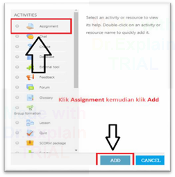Selanjutnya klik Assigenmet pada menu Activities dan klik Add.