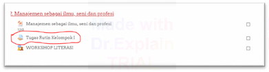 Pada halaman silabus atau topik perkuliahan, pilih topik yang memuat tugas yang diberikan oleh dosen seperti contoh gambar dibawah ini. Pada contoh dibawah ini, topik yang memuat tugas adalah topik 2. Klik Tugas
