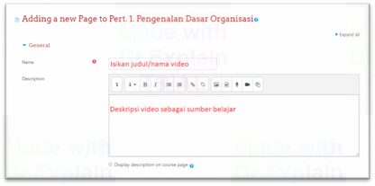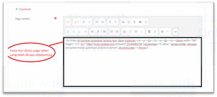Setelah itu, akan muncul berbagai resource yang bisa ditambahkan sebagai bahan pembelajaran. Untuk menyematkan video yang telah dicopy, maka klik Page pada menu Resource. Selanjutnya klik Add.
