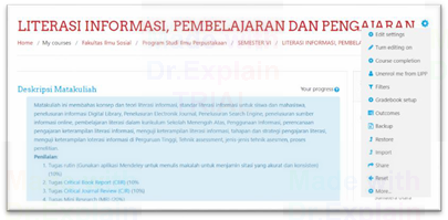 Klik Turn Editing on untuk menghidupkan mode ubah. Langkah ke tujuh ini harus selalu dilakukan sebelum mengubah atau mengedit halaman silabus untuk berbagai aktifitas.