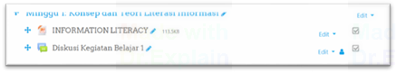 Setelah mode ubah dihidupkan, pada kolom topik silabus yang akan dicantumkan Forum Diskusi, klik Add an activity and resource pada sudut kanan bawah pada kotak topik silabus.