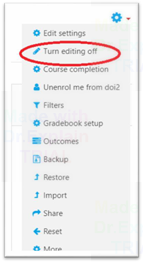 Jika sudah selesai semuanya, maka silabus telah selesai dibuat, silahkan kembali pada pengaturan sebelumnya. Klik icon setting pada pojok kanan atas kemudian klik Turn Editing Off.